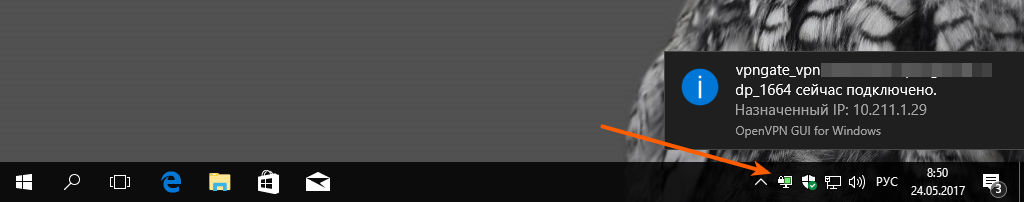• После этого запускаем ярлык OpenVPN GUI или находим его в трэе программ (иконка с cерым монитором)