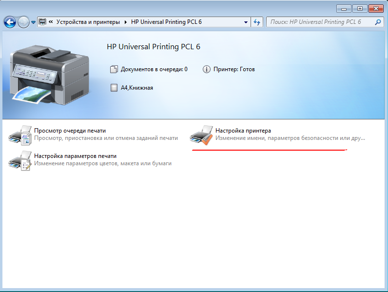 2. Заходим (двойным кликом на HP Universal Printing PCL6) на универсальный принтер и выбираем настройку принтера.