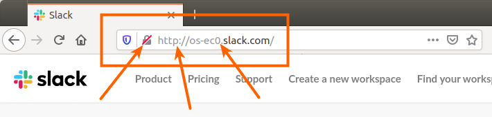 Вот так выглядит адресная строка правдивого сайта https://os-eco.slack.com: