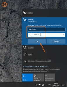 - Кликнуть по сетевому значку в трее, найти нужную сеть, "Подключиться" (лучше проставить галочку в чекбоксе "Подключаться автоматически");