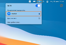- Если все прошло успешно, то в разделе Wi-Fi увидите название необходимой сети, а сетевой значек в трее обретет соответствующий статус.