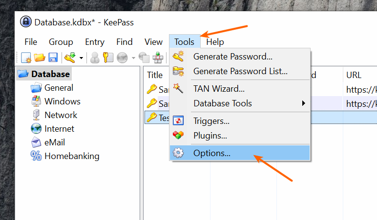 2. Можно включить автосохранение при закрытии/блокировке базы, для этого необходимо перейти в 'Tools' → 'Options'