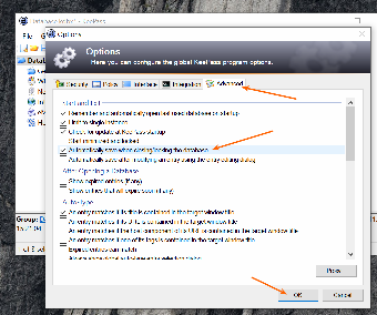 и во вкладке "Advanced" активировать функцию "Automatically save when closing/locking the database", нажать кнопку "Ok".