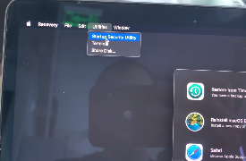 - в верхней панели выберите "Utilities" > "Startup Security Utility", разблокируйте системный диск используя свои учетные данные, кликните по кнопке "Security Policy";