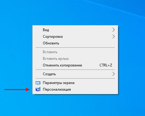 1. Для того, чтобы включить, нажимаем на рабочем столе правой кнопкой мышки и в контекстном меню выбираем пункт Персонализация: