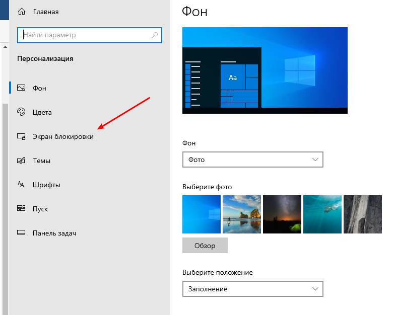 2. После этого, в открывшемся окне, выбираем пункт Экран блокировки (Lock Screen):