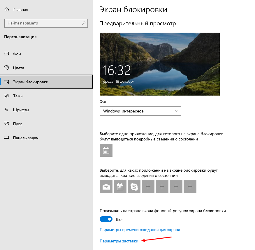 3. В этом окне выбираем пункт Параметры заставки: