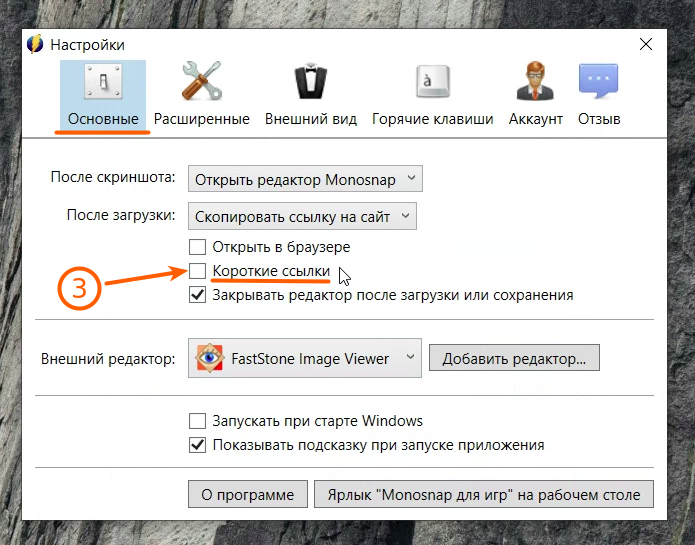 Во вкладке Основные необходимо обязательно снять галочку возле опции Короткие ссылки;