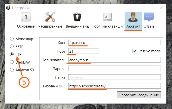 Теперь, чтобы иметь возможность отправлять скриншоты ссылкой, настраиваем Monosnap для работы с нашим корпоративным FTP-сервером.