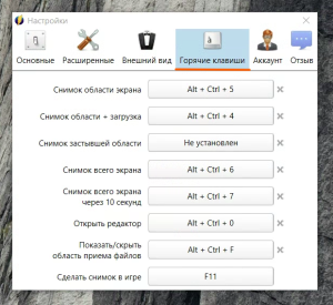 Примечание: Есть возможность настроить свои комбинации клавиш во вкладке Горячие клавиши;